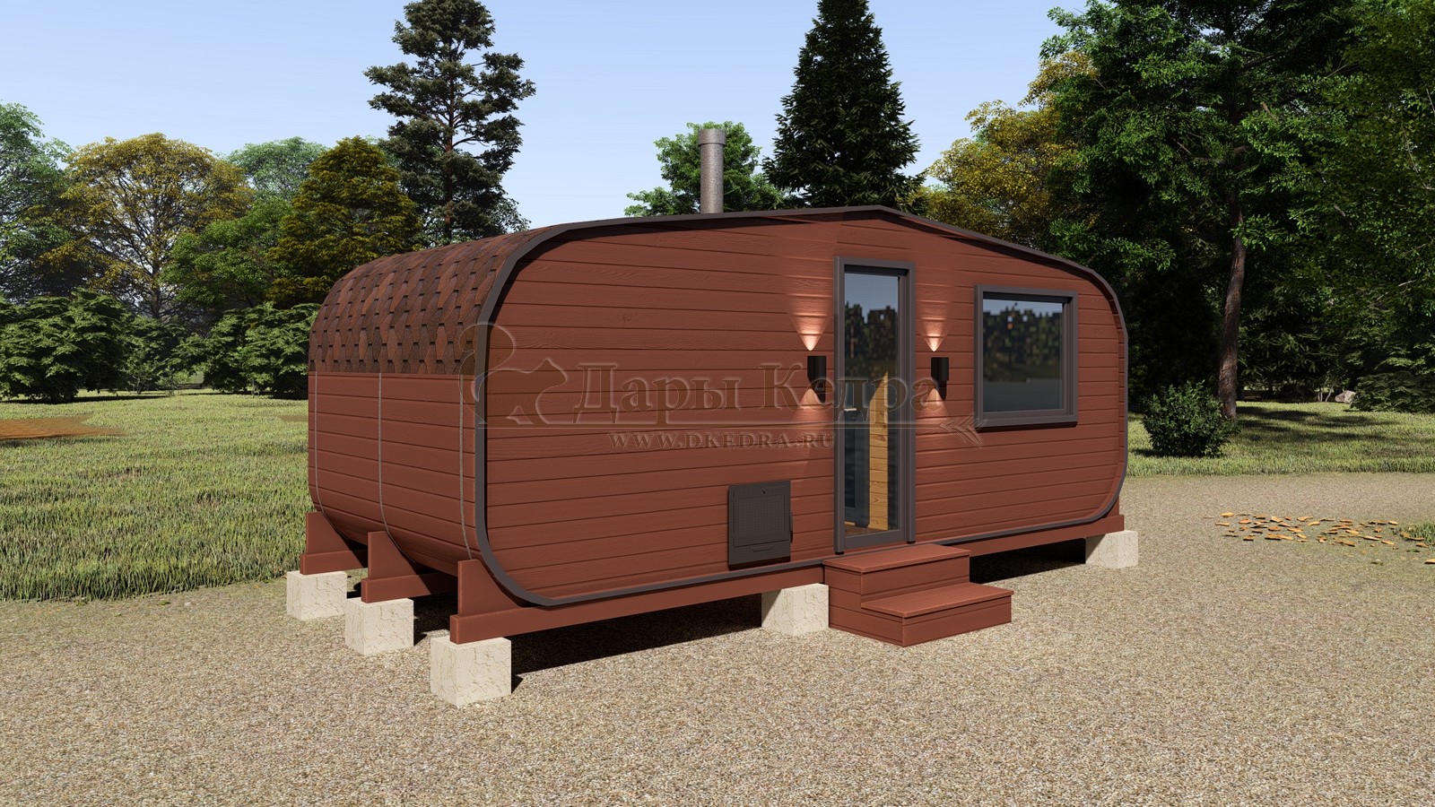 Баня-бочка буханка из кедра с боковым входом (все размеры) Это самая просторная модель бани. Благодаря этому ее можно использовать не только по назначению, но и в качестве летнего домика. Боковой вход у такой модели находится в начале или в середине конструкции. Моечная оснащена душевым поддоном. Двухуровневый открытый полок и лавочка в парилке сделает принятие процедур более комфортным. По вашему желанию баню-бочку можно дополнить печью с внешней загрузкой, благодаря которой весь мусор после топки останется на улице. Баня-бочка буханка из кедра с боковым входом не требует полноценный фундамент, поэтому при необходимости ее можно перенести в другое место. Обращаем Ваше внимание, что в стандартную комплектацию бани входят полки открытого типа в парной с обеих сторон. Дополнительно можно заказать полок закрытого типа или лавку! Кедр обладает ароматическими свойствами. Он не деформируется и влагоустойчив, при правильном уходе за деревом на нем не развиваются грибки и плесень.