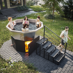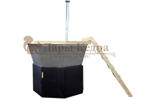 Банный чан из нержавеющей стали Ø-2350 на подставке с ветрозащитой и печью СТ3