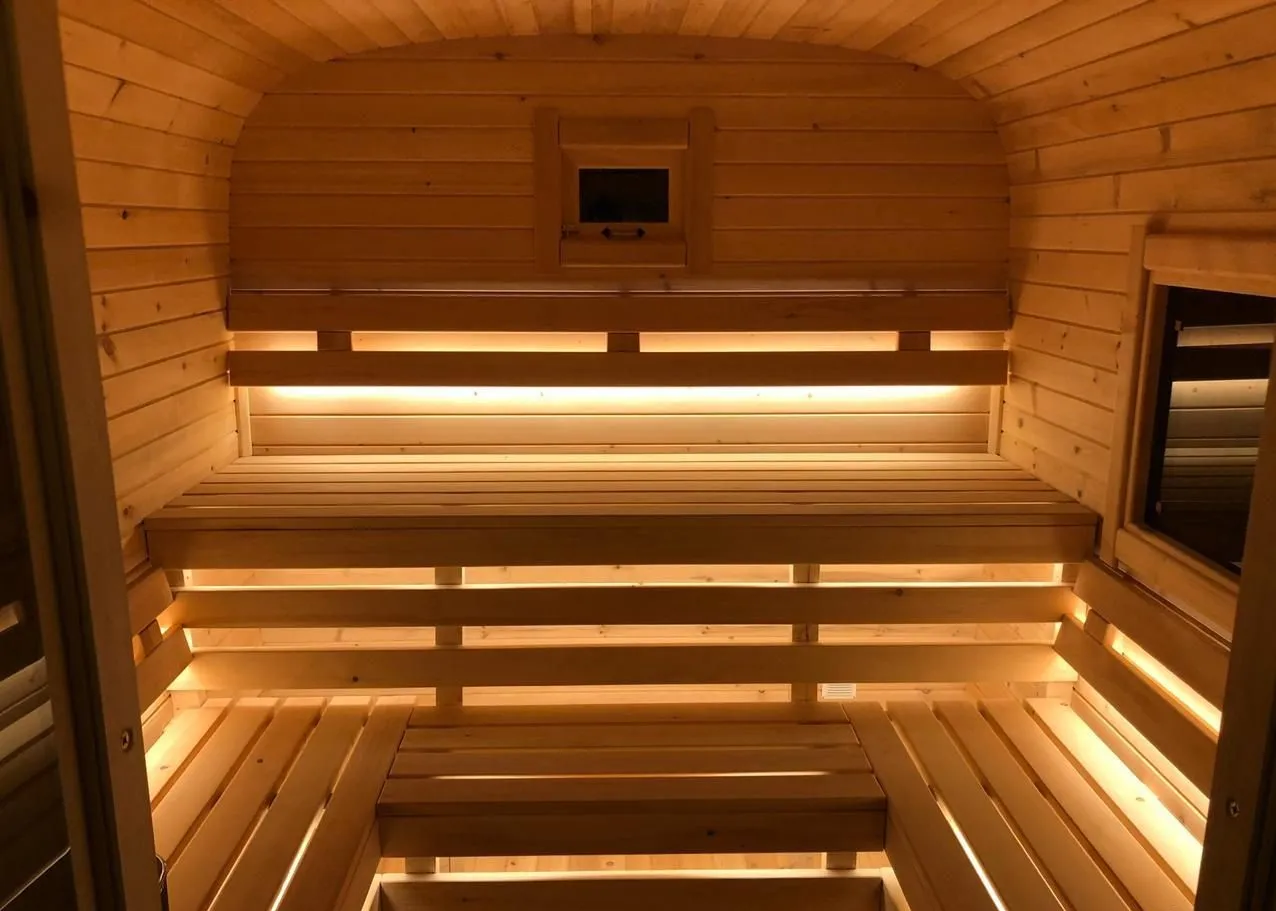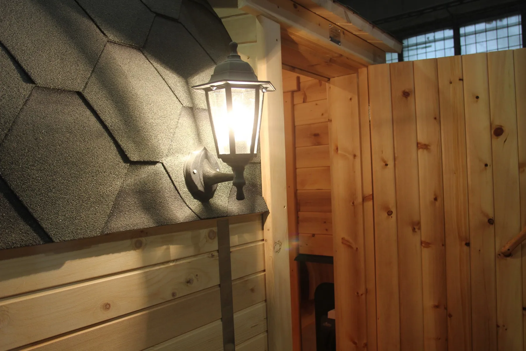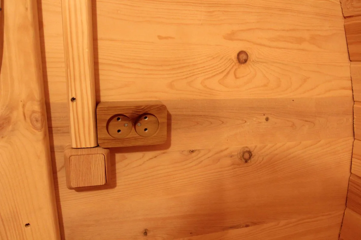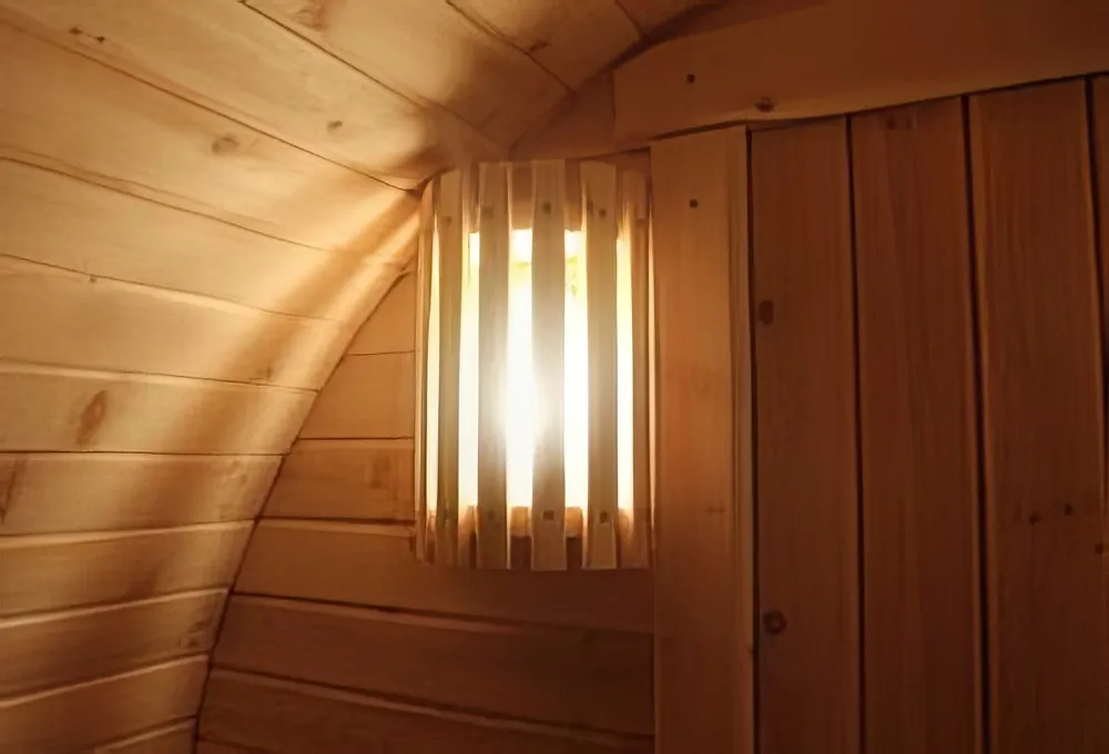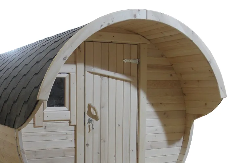 Это изделие круглой вытянутой формы с тремя отделениями: раздевалкой, моечной и парной. Во всех трех отделениях с обеих сторон установлены лавочки из кедра. Печь находится в парилке около дальней стены. Для удобства пользования в бане висят полочки из кедра и вешалка в раздевалке. Время растопки такой бани не превышает 30 минут. По вашему желанию баню-бочку можно дополнить печью с внешней загрузкой, благодаря которой весь мусор после топки останется на улице. Круглая баня-бочка не требует полноценный фундамент, поэтому при необходимости ее можно перенести в другое место.