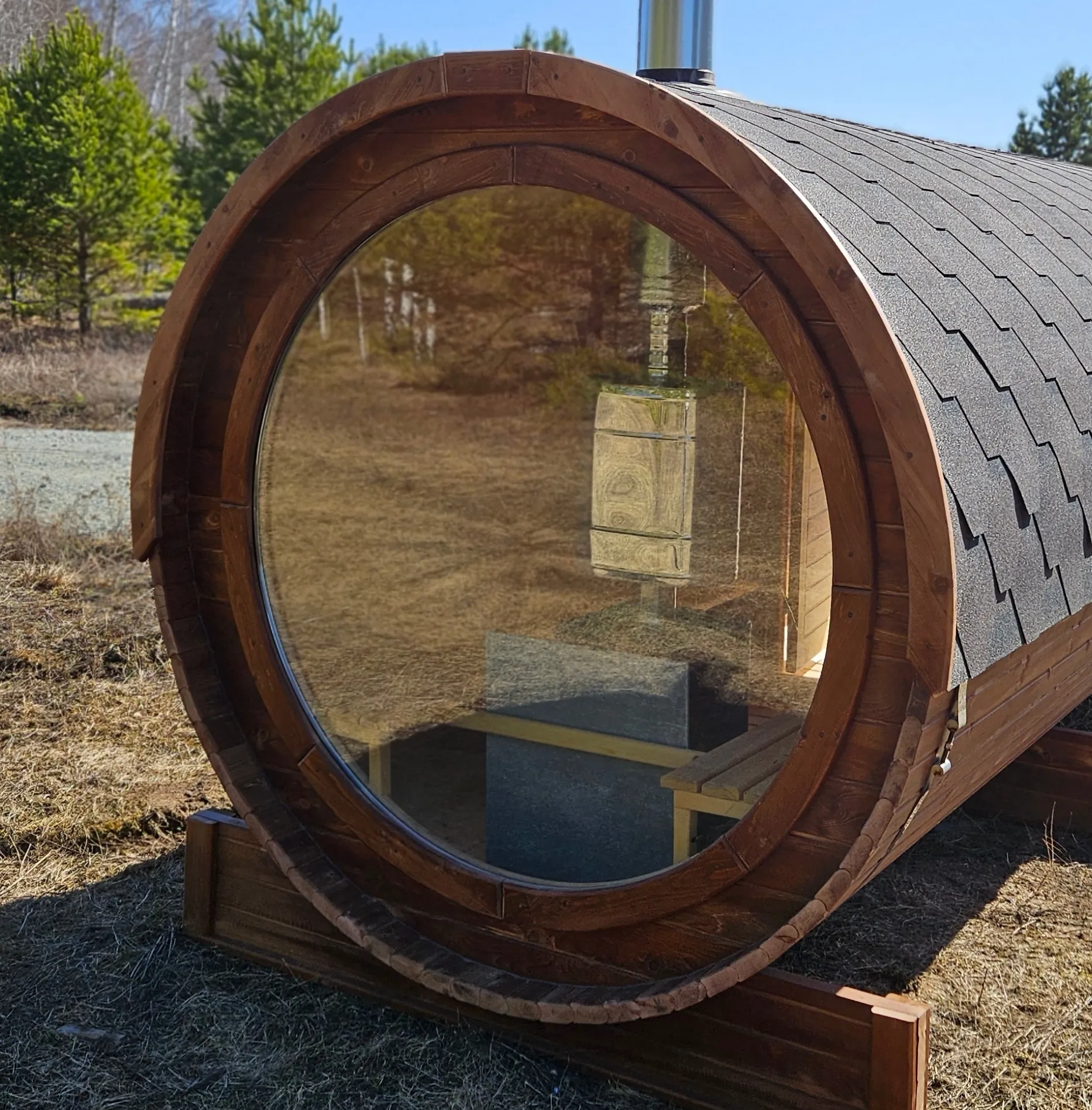 Мобильная баня-бочка с каждым днем набирает все большую популярность благодаря её возможной транспортировки куда угодно: на отдых в лесу, на рыбалку или на побережье реки