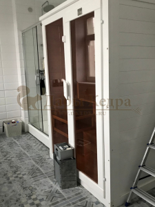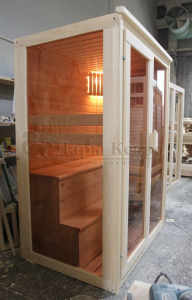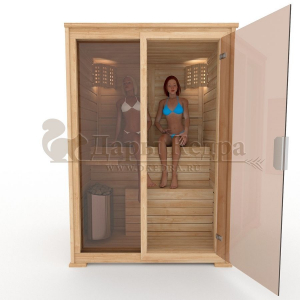 Двухместная финская сауна кабина из кедра и липы с электрокаменкой