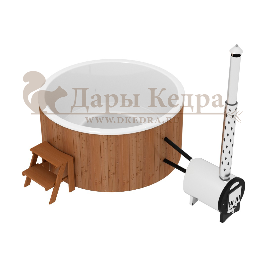 Фурако круглая из кедра с термопластиковой вставкой со встроенной печью Это уличная подогреваемая купель с круглой внутренней чашей из термопластика. Для удобства пользования купель оборудована лавочками, приставной и внутренней лестницей. Нагрев воды происходит за счет встроенной печи, которая находится внутри купели за перегородкой. В комплектацию этой модели входит савок с длинной ручкой, который позволяет извлекать угли после эксплуатации изделия. Термопластик устойчив к воздействию температур, облегчает уход за купелью и увеличивает срок ее службы. Парение на свежем воздухе – это отличный способ укрепить здоровье и поддержать организм в тонусе.