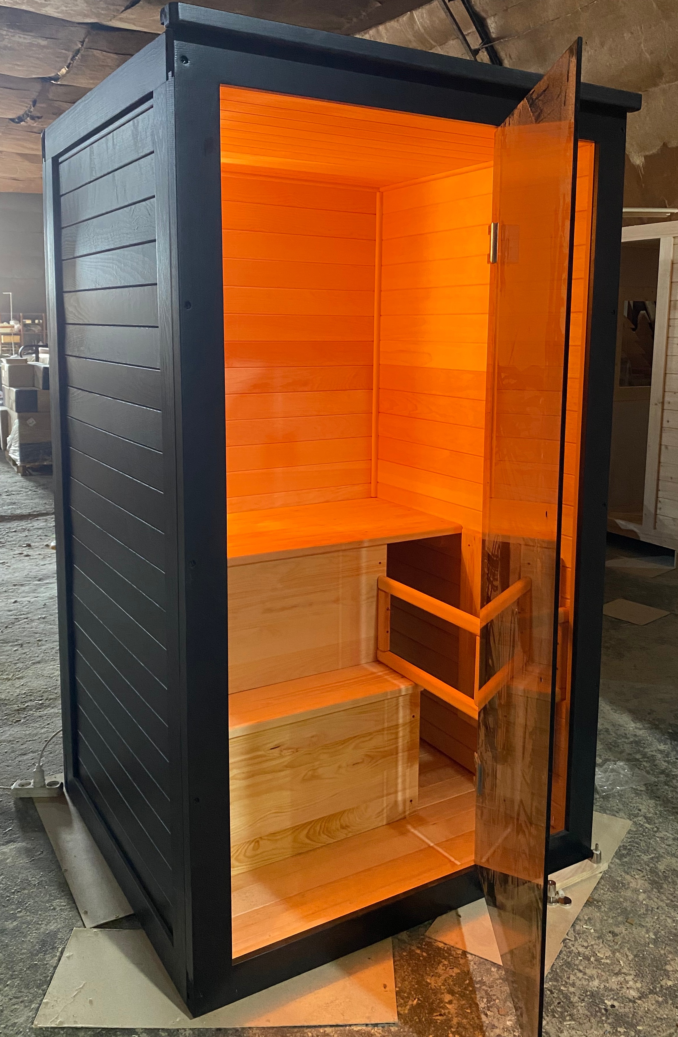 Это специально оборудованная кабина из липы для прогрева тела человека сухим теплом. Воздух в таких парных не нагревается. Инфракрасные лучи воздействуют на тело, равномерно прогревая мышцы, суставы и органы. Карбоновые излучатели, встроенные в стены кабины, обладают мягким прогревом, что полностью исключает возможность ожога. Работает кабина за счет электричества. Компактная одноместная инфракрасная сауна с карбоновыми излучателями подойдет как для домашнего использования, так и для коммерции.