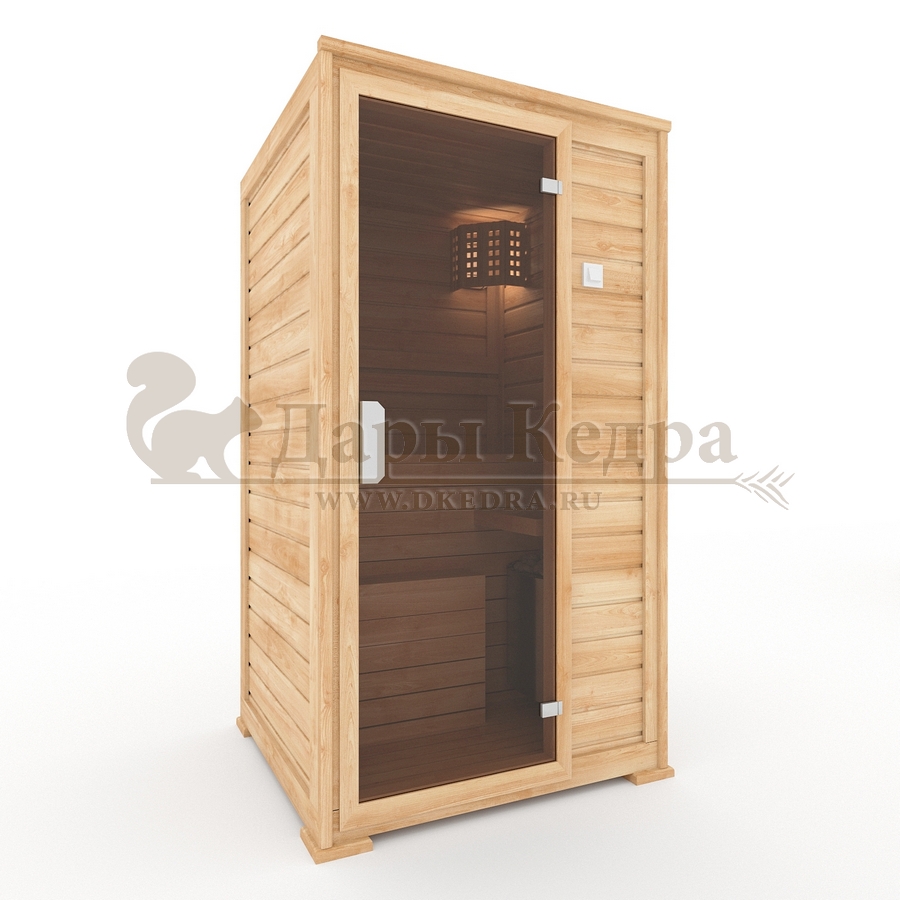 • Одноместная финская сауна кабина из кедра и липы с электрокаменкой Это специально оборудованная готовая деревянная кабина для сухого и влажного парения. Электропечь нагревает пространство внутри и позволяет сбрызгивать камни водой, слегка увлажняя воздух. Такая процедура позволяет избежать перегрева. Сауна обшита снаружи и внутри вагонкой из липы и имеет теплоизоляционный слой. Финская сауна с электропечью подойдет, как для домашнего использования, так и для коммерции. Доставляется в разборном виде щитами, собирается по инструкции с помощью шуруповёрта. Обращаем Ваше внимание, что в стоимость сауны уже включена дверь с закаленным стеклом в раме из кедра с фиксатором и деревянным фасадом справа. Вы можете заменить фасад на цельностеклянный с безрамной дверью за дополнительную плату