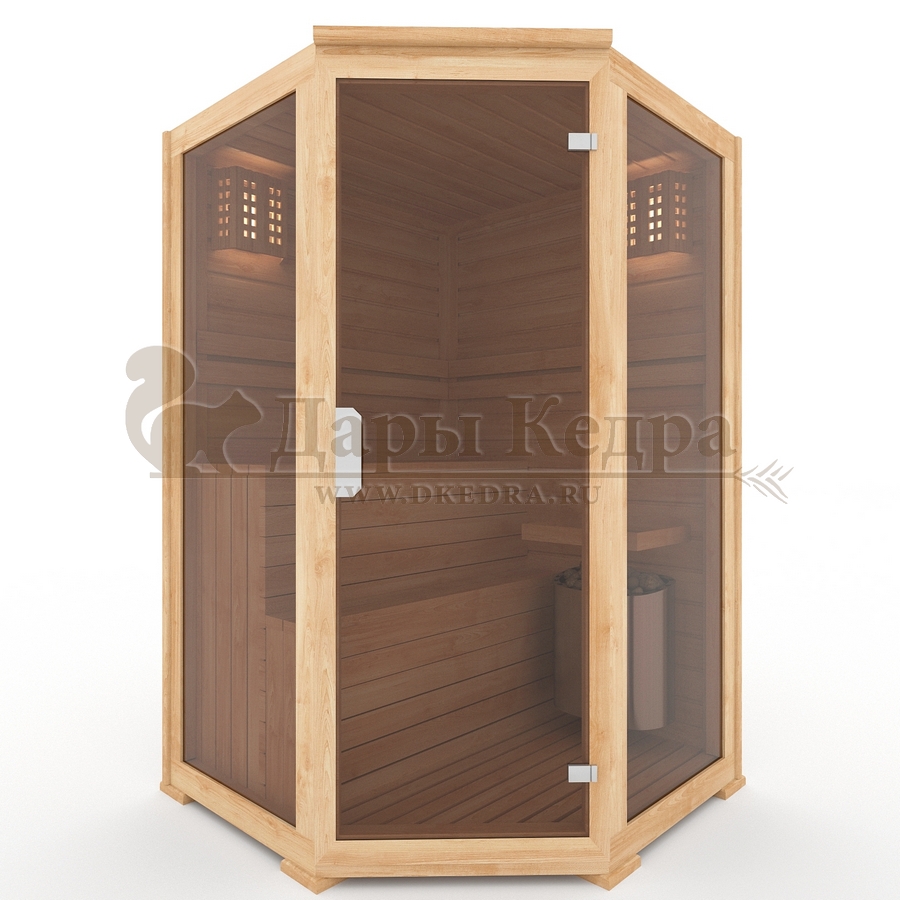 Двухместная угловая финская сауна кабина из кедра и липы с электрокаменкой