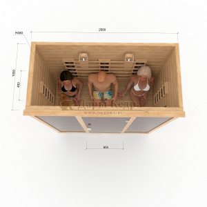 Это специально оборудованная кедровая кабина для прогрева тела человека сухим теплом. Воздух в таких парных не нагревается. Инфракрасные лучи воздействуют на тело, равномерно прогревая мышцы, суставы и органы. Керамические излучатели похожи на лампы, имеют высокую температуру нагрева, поэтому защищены противоожоговыми решетками. Тело человека в таких саунах нагревается интенсивнее. Работает кабина за счет электричества. Трехместная инфракрасная сауна с керамическими излучателями подойдет как для домашнего использования, так и для коммерции.