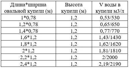 При ширине изделия 0,78 м заполняемость будет около 0,5-1 тонны. Вместимость небольшой купели - 1-2 человека. При длине изделия от 1,6 м вместимость составит 2-4 человека.