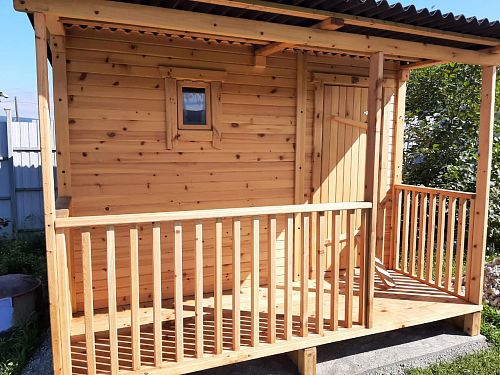 Удобная баня классической формы. Сделали по нашему запросу веранду чуть шире, чтобы можно было поставить садовую мебель. Очень довольны, в итоге и баню получили, и маленькую беседку. Спасибо менеджерам за лояльность и внимание к клиентам!